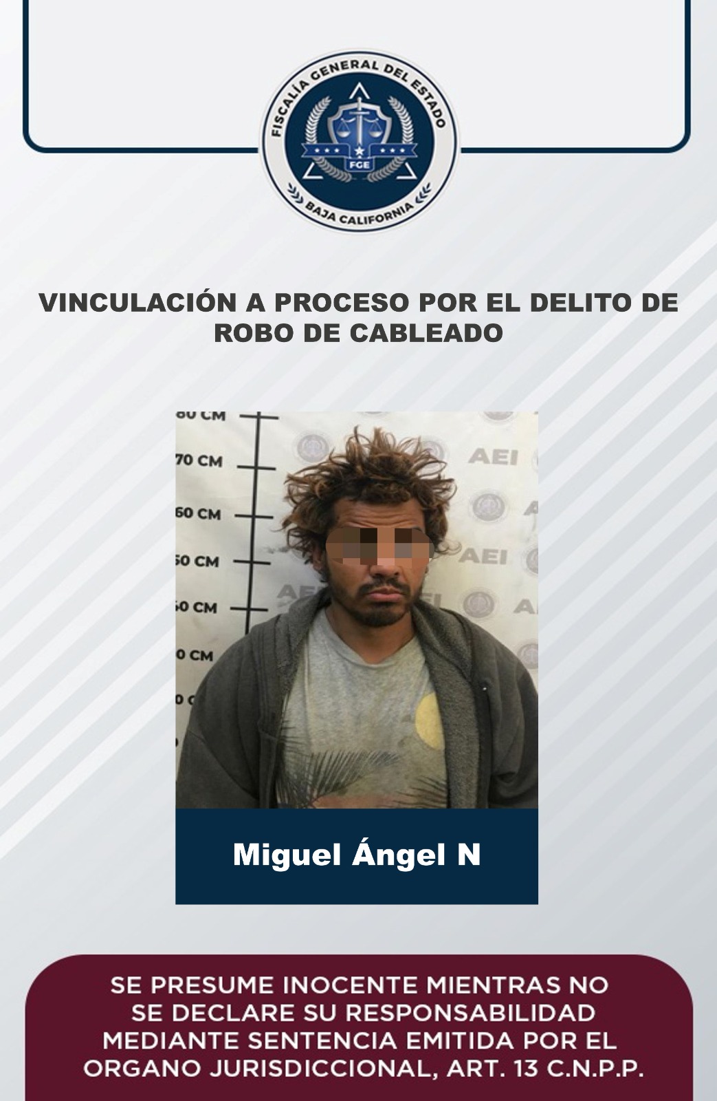 MEXICALI, B.C. 24 DE MARZO DE 2023.- La Fiscalía Regional de Mexicali, a través de la Unidad de Investigación con Detenidos Poniente, logró la vinculación a proceso de Miguel Ángel “N” por el delito de robo de cableado.