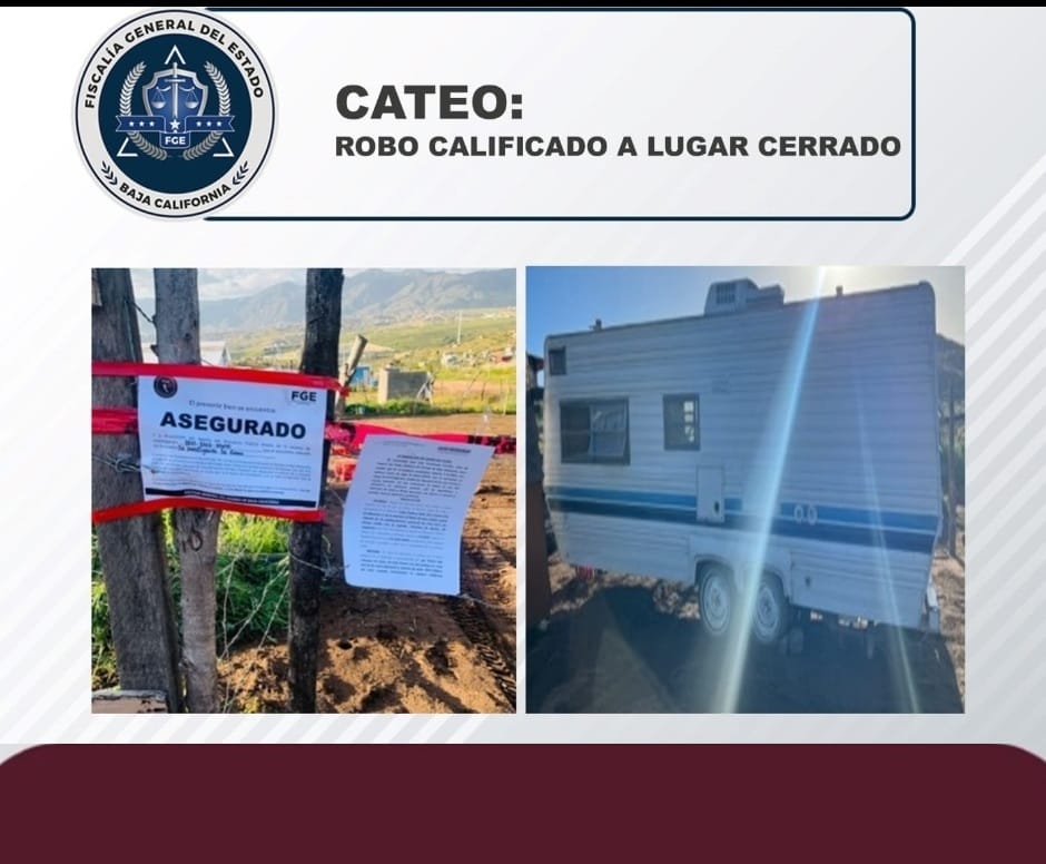 ENSENADA, B.C. La Fiscalía Regional de Ensenada, tras cumplimentar una orden de cateo en un predio ubicado en la colonia El roble, aseguró una casa móvil tipo remolque que contaba con reporte de robo reciente.