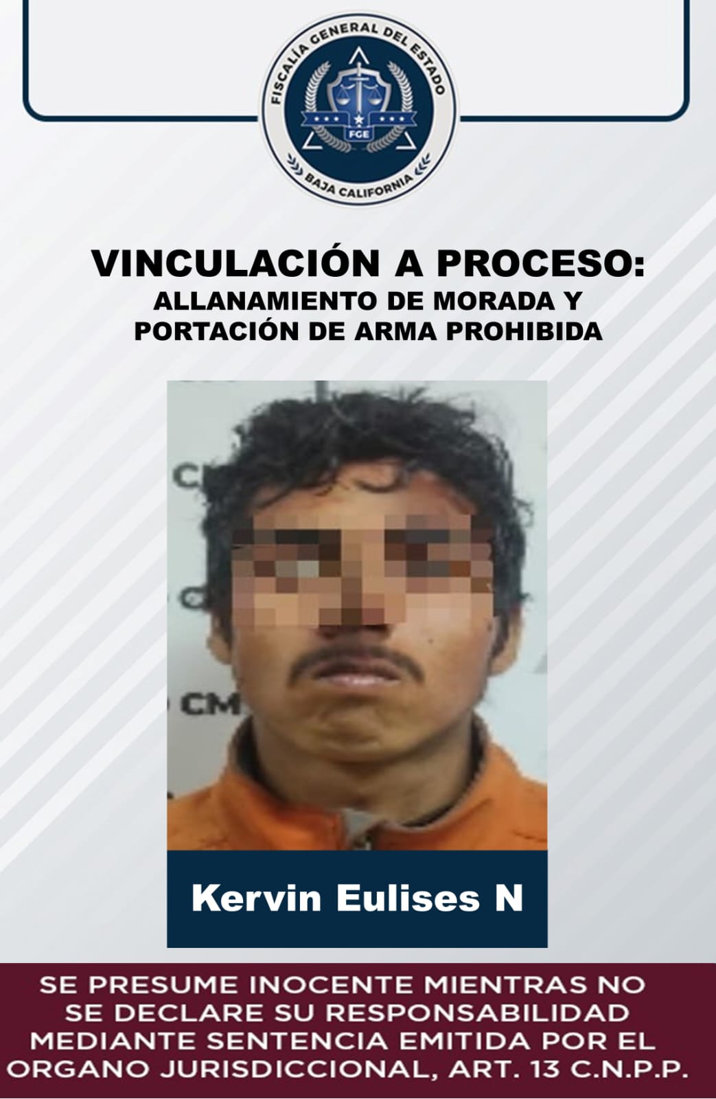 SAN QUINTÍN, B.C. 29 DE MARZO DE 2023.- La Fiscalía Regional de San Quintín, obtuvo auto de vinculación a proceso en contra de Kervin Eulises “N”, por su presunta responsabilidad en el delito de allanamiento de morada y portación de arma prohibida.