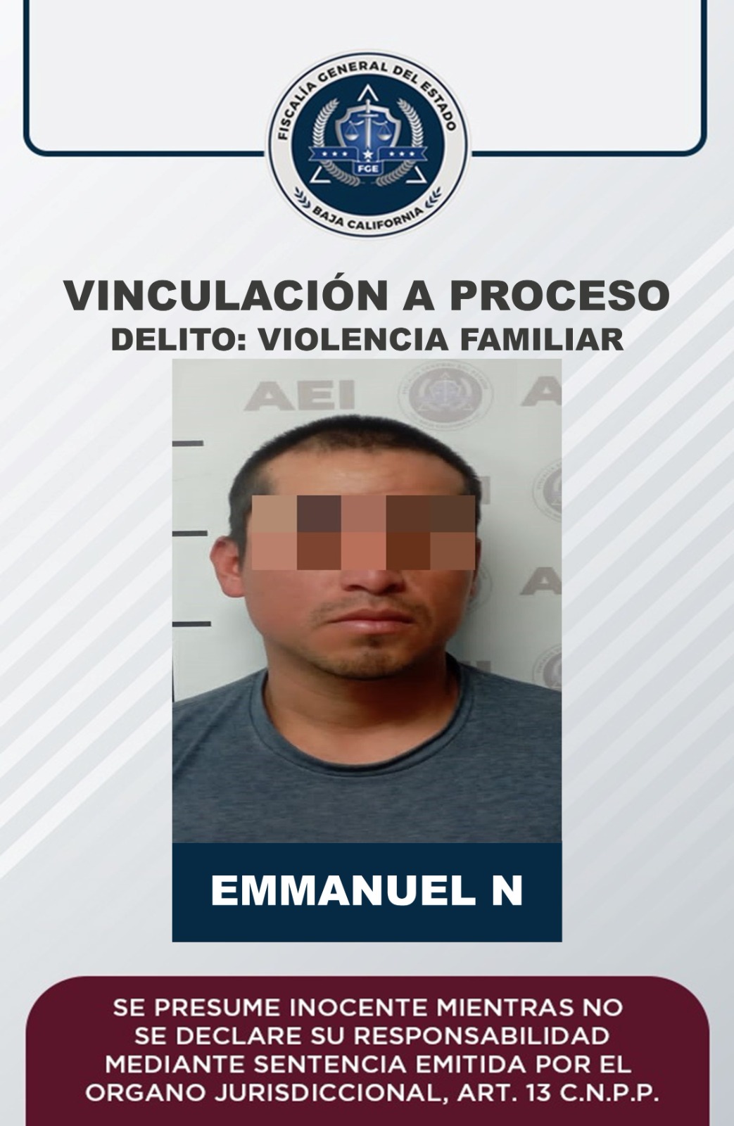 SAN QUINTÍN, B.C. La Fiscalía General del Estado logró la vinculación a proceso en contra de Emmanuel “N”, quien permanecerá en prisión preventiva, durante el desarrollo de la investigación complementaria por el delito de violencia familiar.
