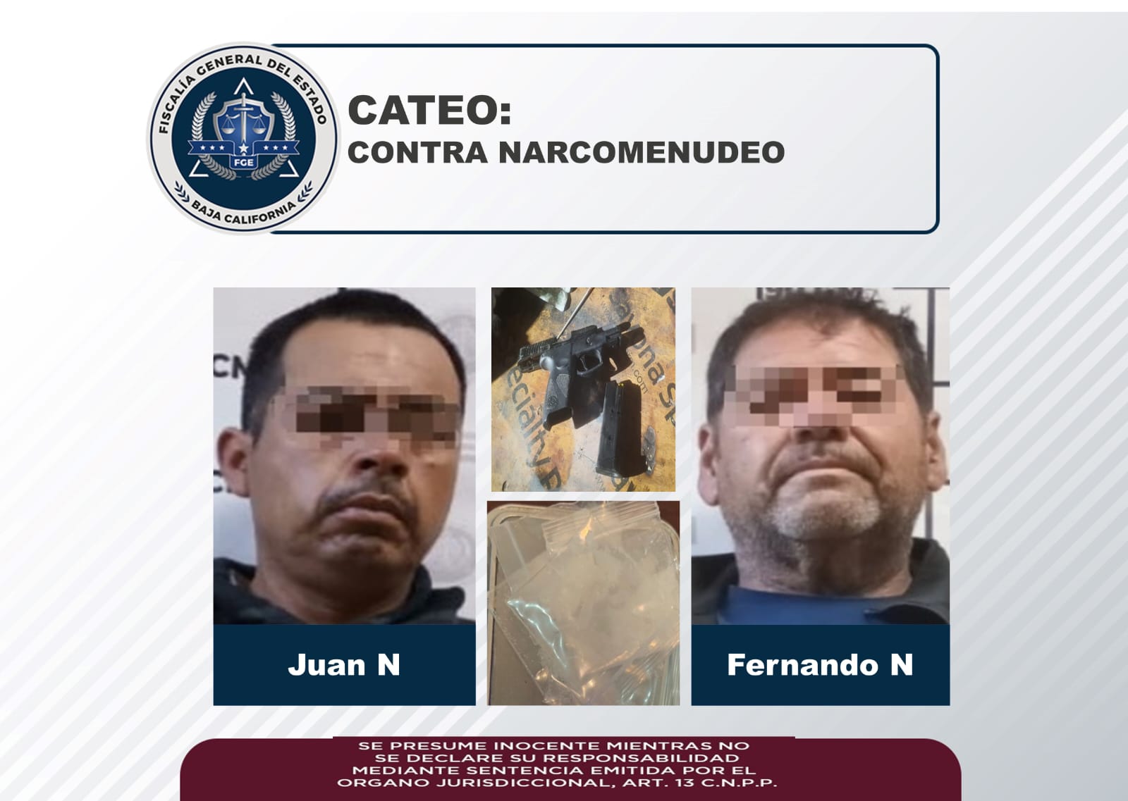 Cateo contra narcomenudeo deriva en detención dos sujetos con arma de alto calibre y narcóticos: FGE