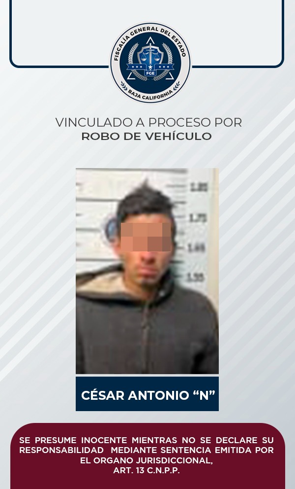 PLAYAS DE ROSARITO, B.C. Una investigación desarrollada por la Fiscalía Regional de Playas de rosarito, a través de la Unidad de Investigación de Detenido, derivó en que un hombre iniciara su proceso penal por el delito de robo equiparado de vehículo de motor (poseer).