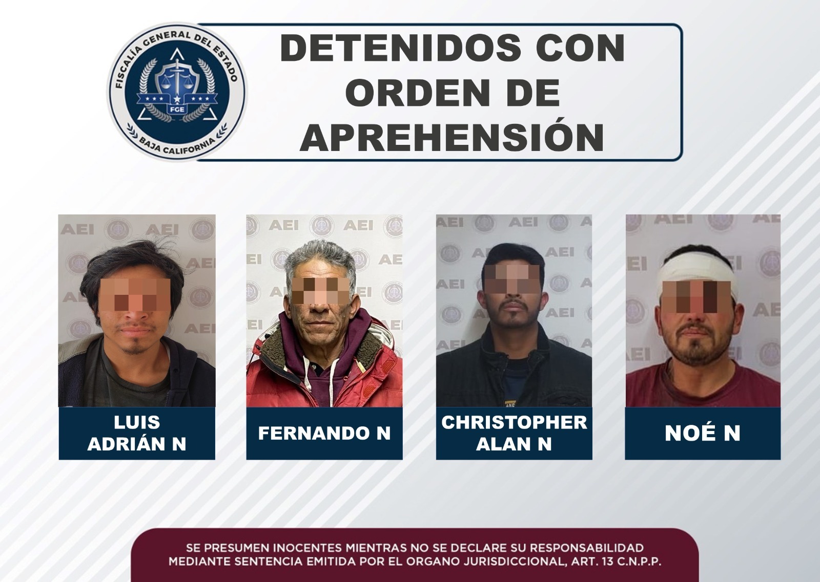 ENSENADA, B.C. Actos de investigación a cargo de elementos de la Fiscalía General del estado, pertenecientes al Grupo Especializado en Aprehensiones, resultaron en la captura de cuatro sujetos por diversos delitos.