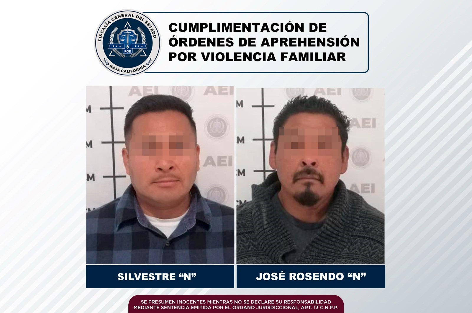 PLAYAS DE ROSARITO, B.C. Tras información recabada en gabinete y campo, elementos de la Fiscalía General del Estado, a través de la Agencia Estatal de Investigación, aprehendiendo a dos sujetos, que en casos por separado, son señalados del delito de violencia familiar.