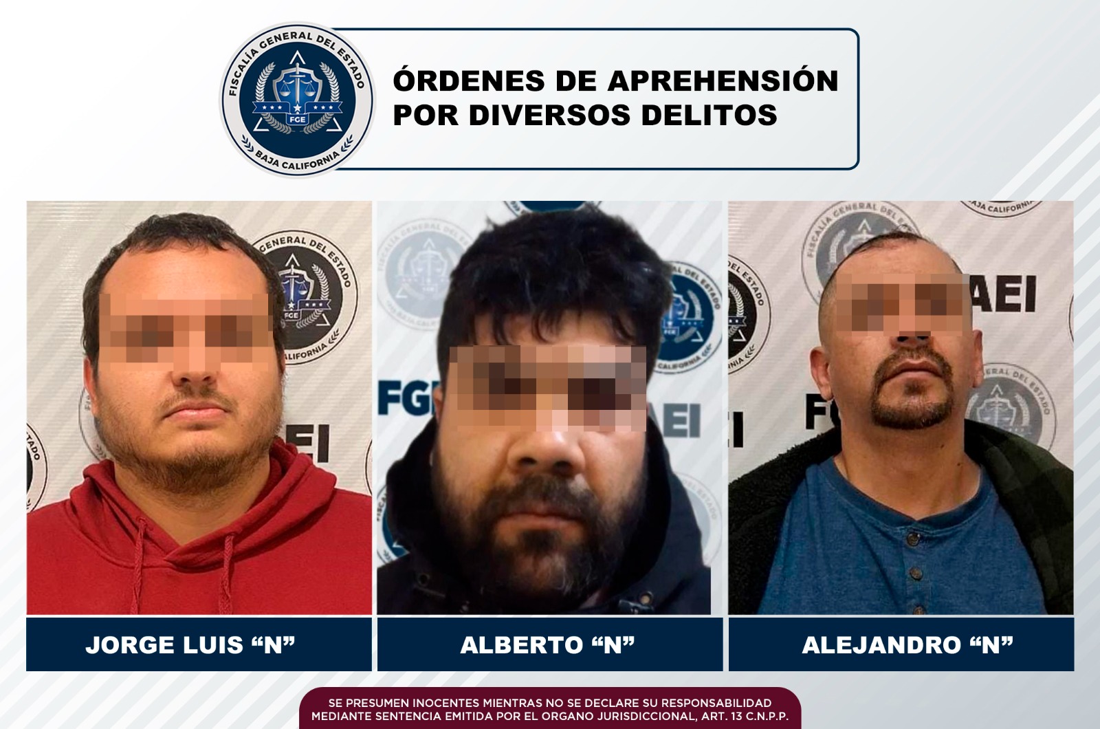 TIJUANA, B.C. En acciones distintas, agentes estatales de investigación de la Fiscalía General del Estado (FGE), cumplimentaron tres mandamientos judiciales en contra del mismo número de personas, las cuales, una vez aseguradas, fueron llevadas ante la autoridad correspondiente.