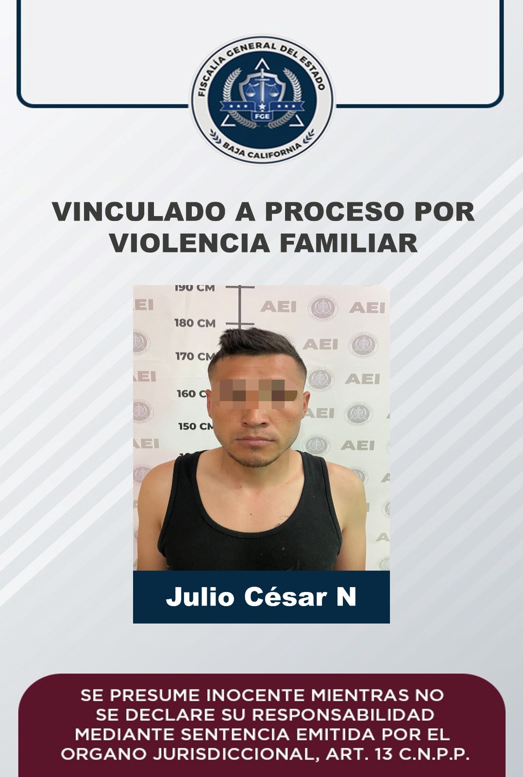 MEXICALI, B.C. Mediante el trabajo desempeñado en la integración de la carpeta de investigación, la Unidad de Investigación de Delitos con Detenidos Oriente, de la Fiscalía Regional de Mexicali, obtuvo la vinculación a proceso en contra de Julio César “N” por el delito de violencia familiar.