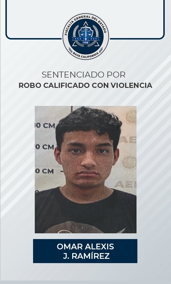 TIJUANA, B.C. Como resultado de acciones de investigación y datos de prueba recabados por la Fiscalía Regional de Tijuana, se obtuvo, por medio de un procedimiento abreviado, una sentencia en contra de Omar Alexis J. Ramírez, responsable del delito de robo calificado con violencia.