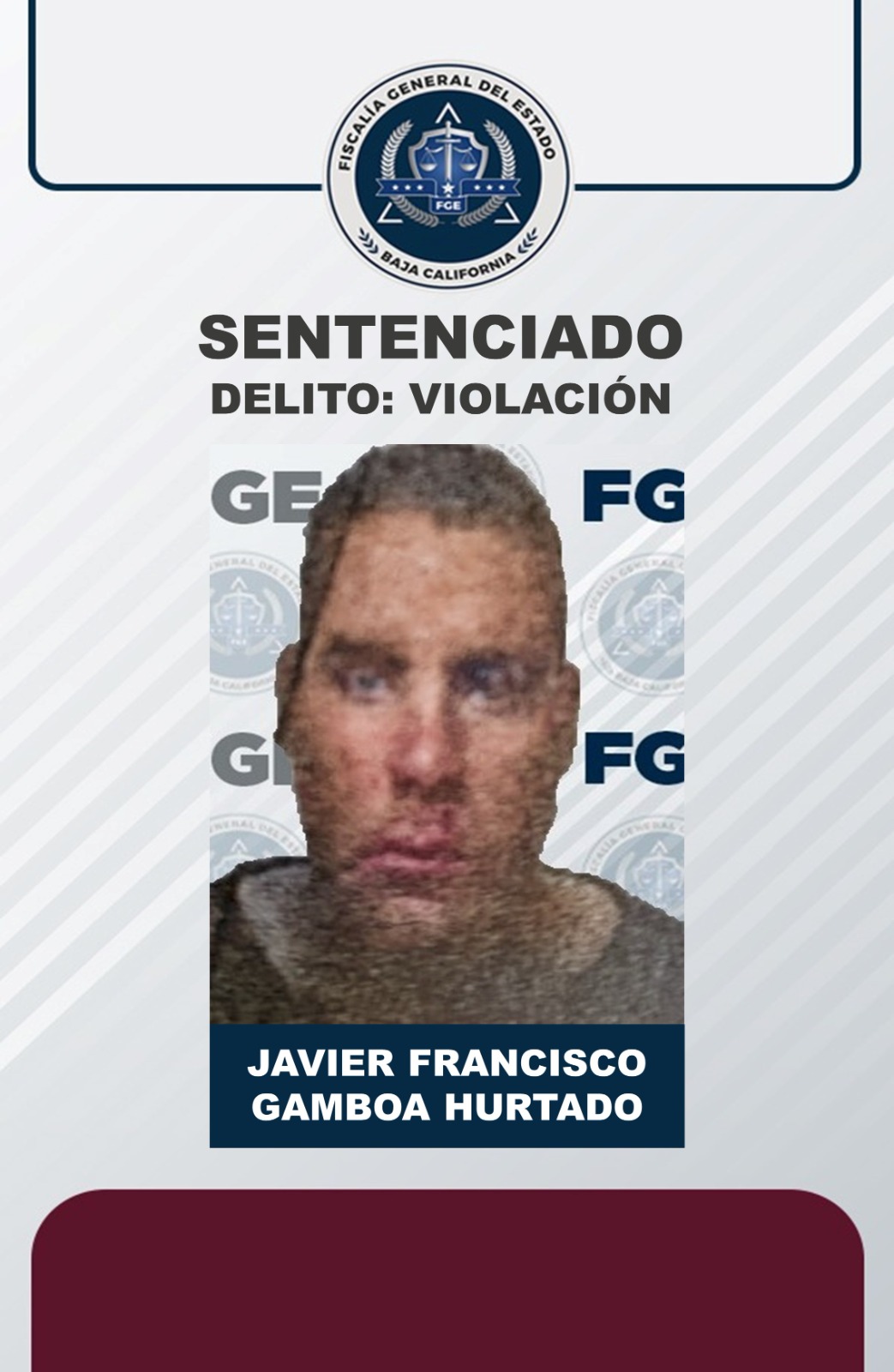 ENSENADA, B.C. La Fiscalía General del Estado obtuvo una sentencia condenatoria contra Javier Francisco Gamboa Hurtado, quien purgará 6 años 3 meses y 10 días en prisión, por ser culpable del delito de violación.