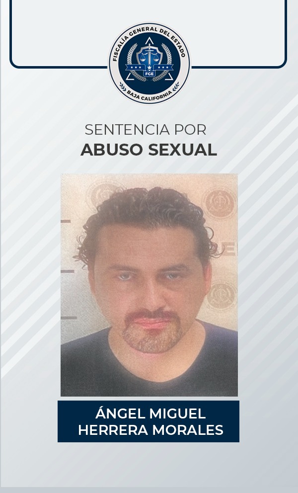 PLAYAS DE ROSARITO, B.C. Como parte del compromiso de defender y proteger a los menores víctimas de algún delito, la Fiscalía General del Estado, mediante labor de investigación, obtuvo una sentencia para Ángel Miguel Herrera Morales, quien resultó culpable del delito de abuso sexual a menor de 14 años.
