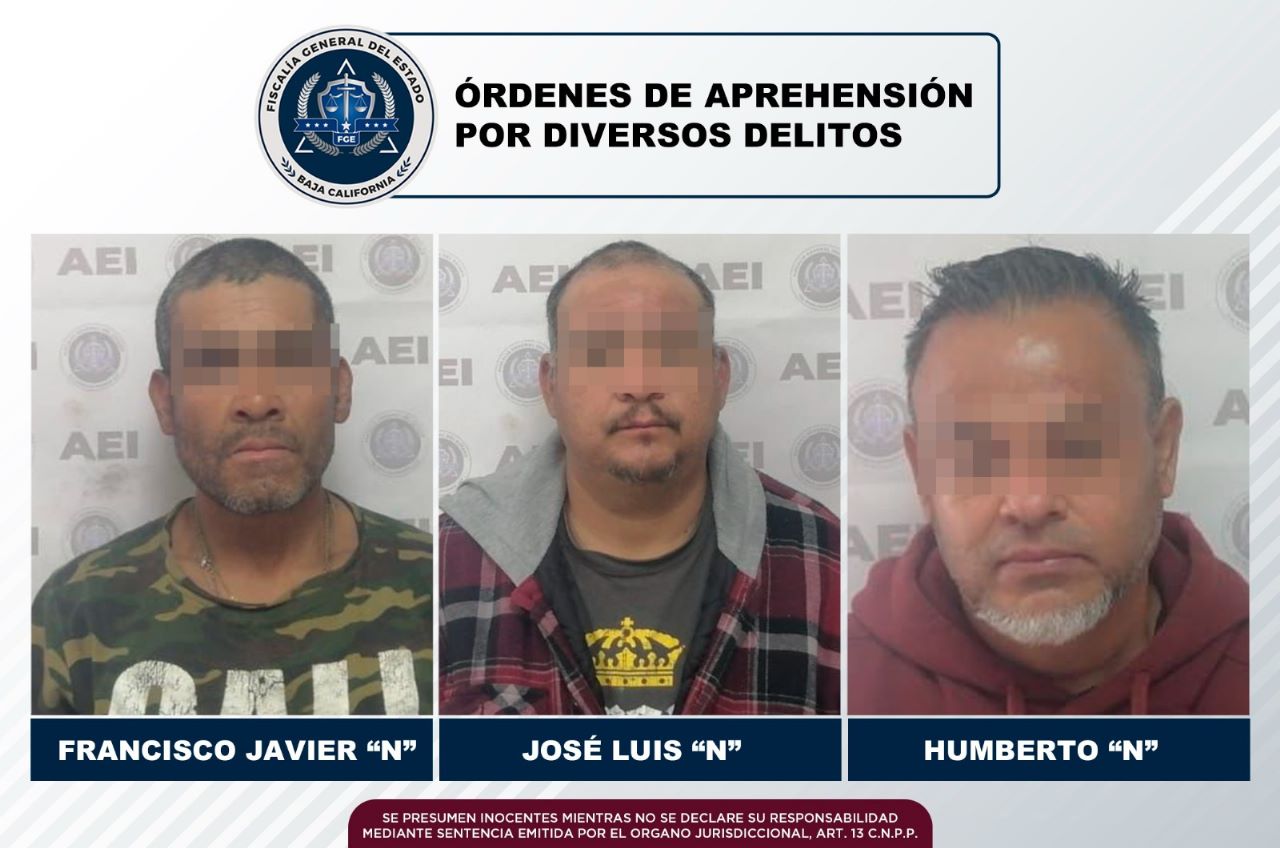 TECATE, B.C. Por tener cuentas pendientes con la justicia, tres sujetos fueron localizados y aprehendidos por la Agencia Estatal de Investigación (AEI), esto mediante diversas acciones de investigación que se llevaron a cabo en días recientes en este municipio.