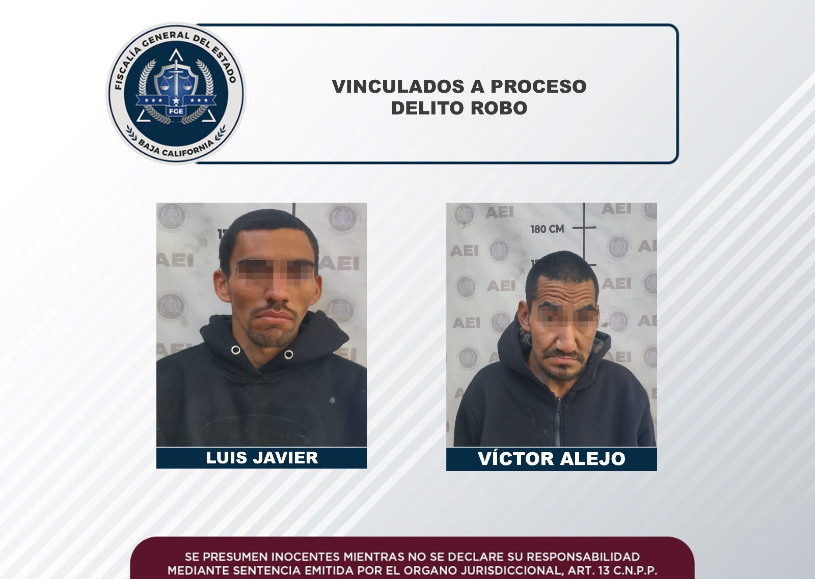 MEXICALI, B.C. Con base a las pruebas presentadas por la Fiscalía Regional de Mexicali, a través de la Unidad de Investigación con Detenidos Poniente, se logró iniciar el proceso penal de dos hombres relacionados en el delito de robo calificado a lugar cerrado.