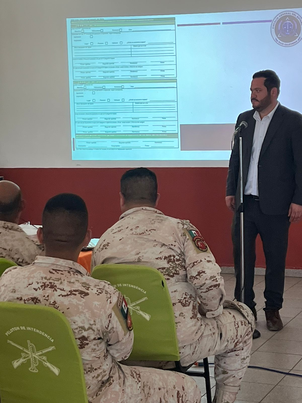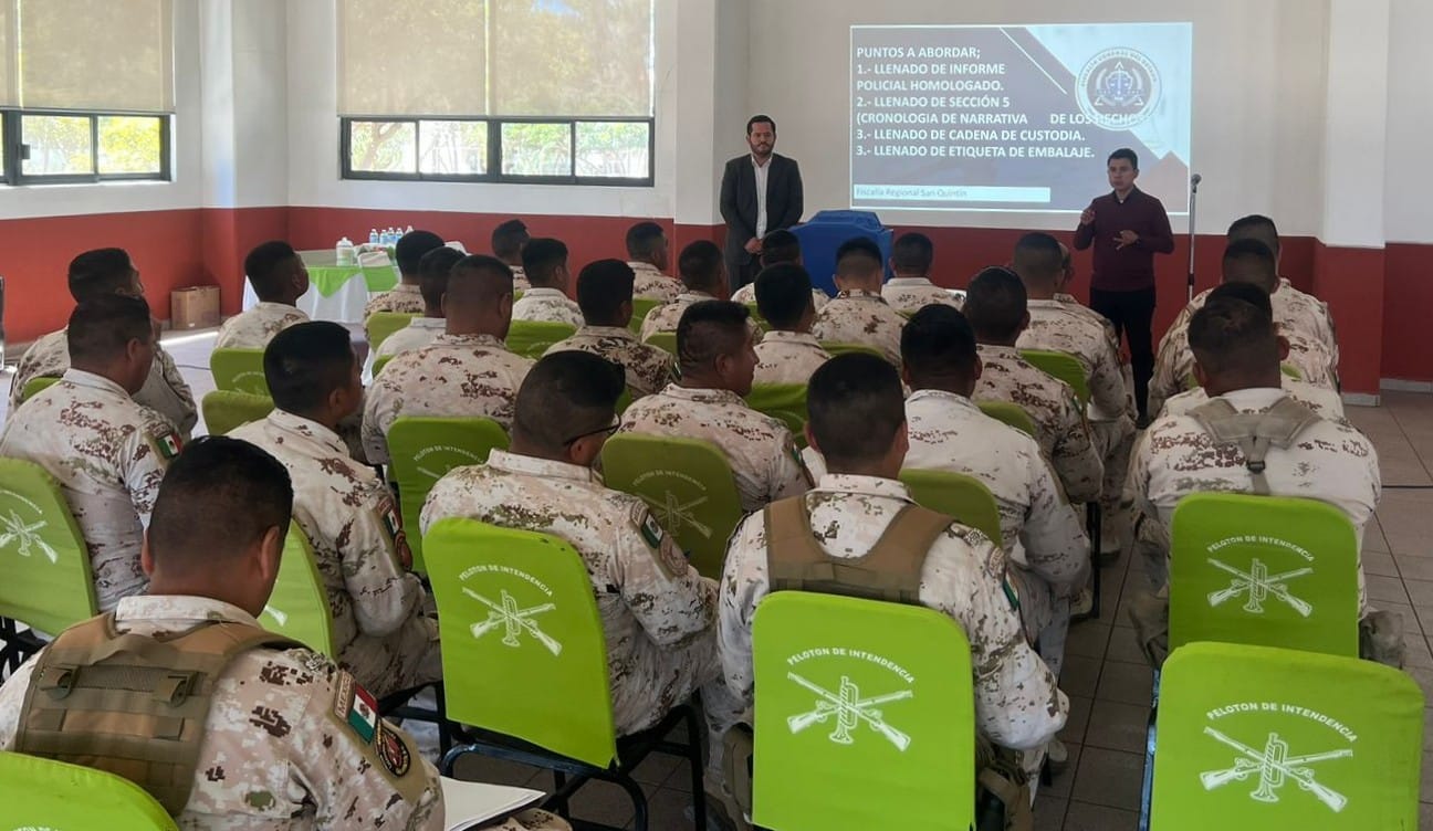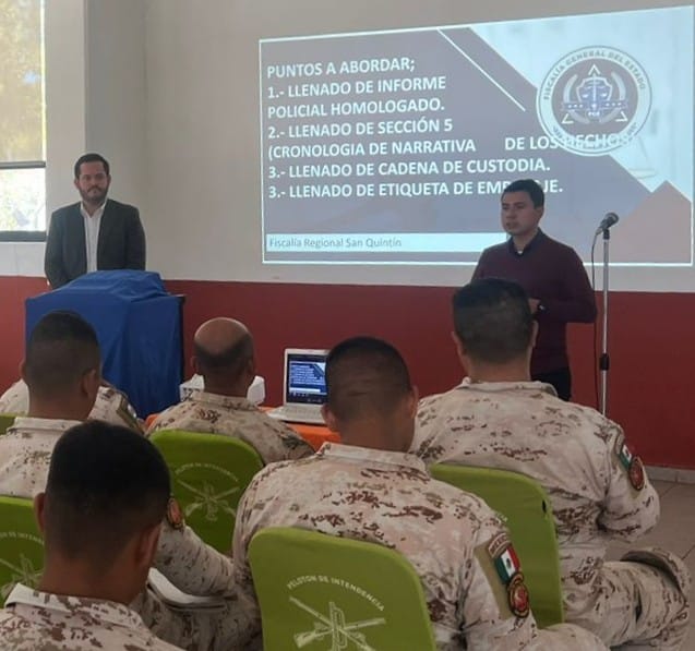 En esta vertiente, Fernando Maldonado Lamadrid, Fiscal Regional de San Quintín, y el Coronel Alfredo Gutiérrez Rosado, Comandante del 67 Batallón de Infantería, convocaron a elementos de la Secretaría de Defensa Nacional, para asistir a un curso de capacitación que permita lograr resultados efectivos en materia de seguridad en el municipio de San Quintín.