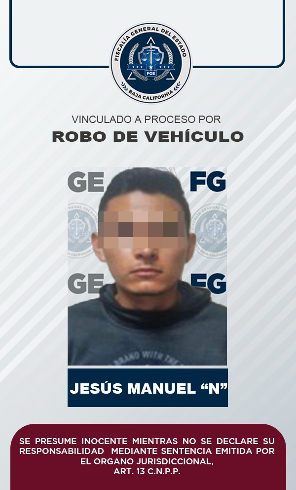 PLAYAS DE ROSARITO, B.C. El Ministerio Público de la fiscalía Regional de Playa de Rosarito, presentó ante un juzgador datos de prueba que fueron suficientes para que Jesús Manuel “N”, iniciara proceso penal por su presunta responsabilidad en el delito de uso de vehículo de motor con placas de vehículo de motor robado.