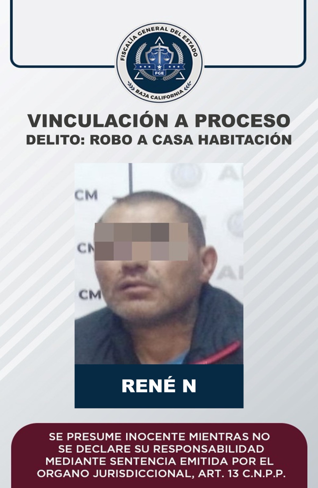 ENSENADA, B.C. La Fiscalía Regional de Ensenada obtuvo la vinculación a proceso de un sujeto que fue detenido, el 15 de abril, por presuntamente haber hurtado diversos objetos en un domicilio de la localidad.