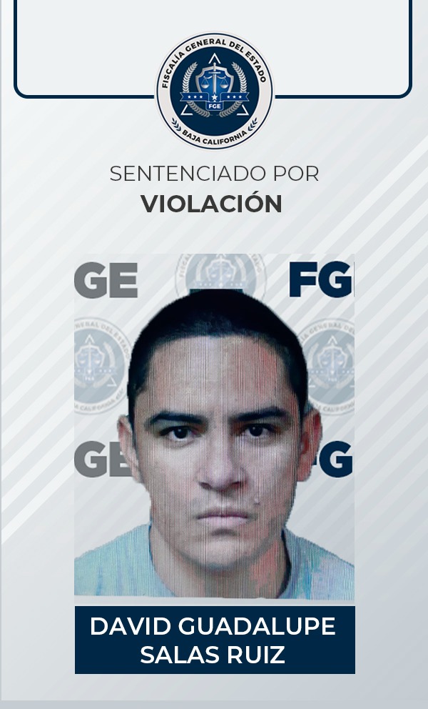 MEXICALI, B.C. Con base en los elementos de prueba presentados por la Fiscalía General del Estado (FGE), David Guadalupe Salas Ruiz, responsable del delito de violación equiparada agravada, recibió un fallo condenatorio, por lo que deberá pasar 19 años y 9 meses en prisión.
