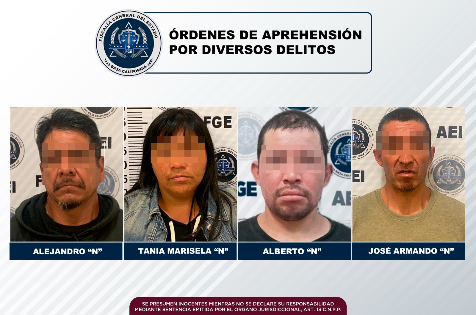 TIJUANA, B.C. El Grupo Especializado en Aprehensiones de la Fiscalía General del Estado, logró la cumplimentación de mandamientos judiciales contra tres hombres y una mujer, que en casos distintos, son investigados por violencia familiar y delitos contra la salud.