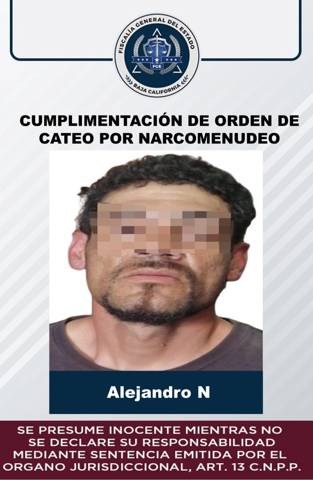 ENSENADA, B.C. Con base en acciones de investigación y ejecución de órdenes judiciales en el puerto, hace unos días, elementos adscritos a la Fiscalía Especializada en Narcomenudeo, incautaron varios envoltorios con cristal y aseguraron a un sujeto, quien, al parecer, está involucrado en delitos contra la salud.