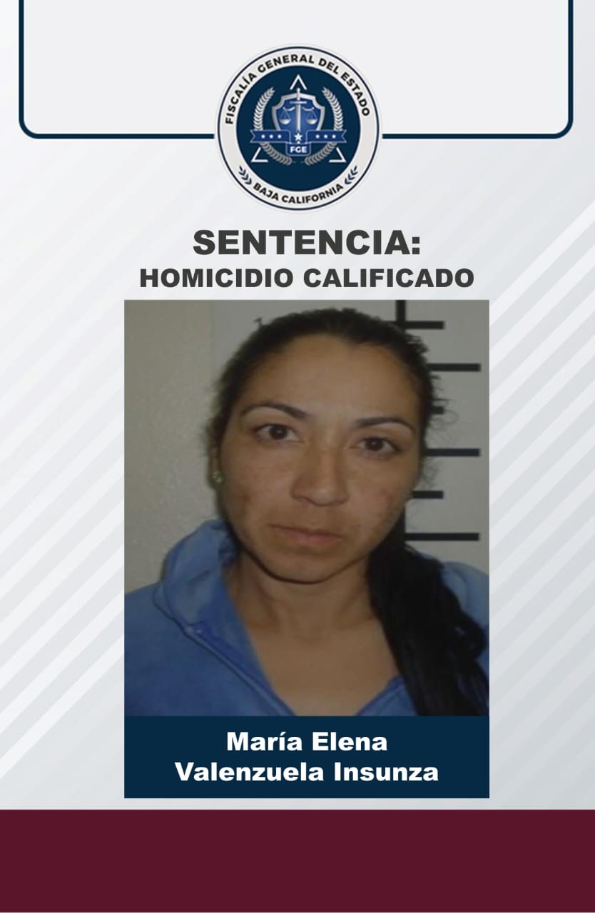 ENSENADA, B.C. La Fiscalía Regional de Ensenada, a través de la dirección de averiguaciones Previas y control de Procesos, obtuvo una sentencia condenatoria de 40 años de prisión contra María Elena Valenzuela Insunza, por el delito de homicidio calificado con ventaja en razón de parentesco no consanguíneo.
