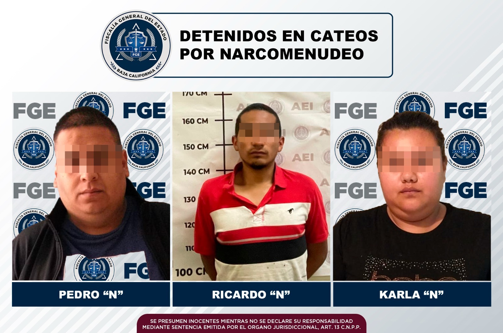 De esta forma, en carpetas de investigación iniciadas por la Fiscalía Especializada en Narcomenudeo se solicitó a jueces de control, autorización legal para realizar estas incursiones en tres diferentes domicilios, que concluyeron con la detención de tres personas, y el decomiso de varios envoltorios de narcóticos.