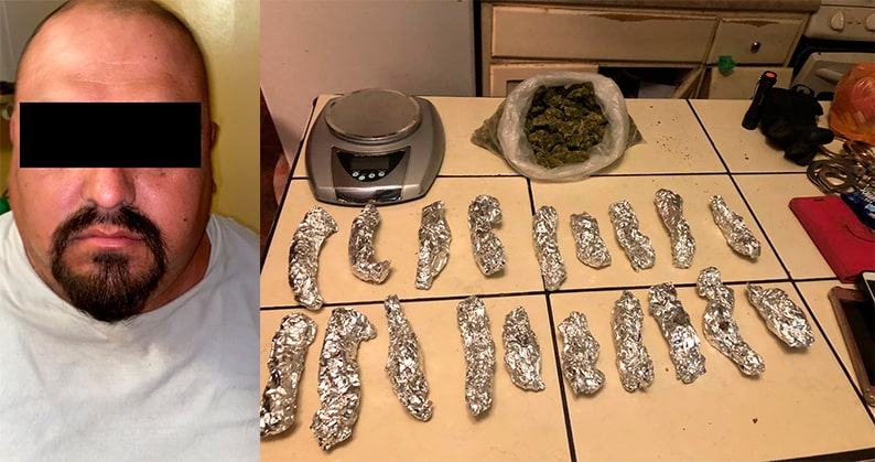 Durante el cumplimiento a la diligencia se detuvo a JOSÉ RODOLFO “N” alias El Bunner de 38 años, en posesión de una bolsa de plástico que contenía marihuana, y 19 envoltorios de papel aluminio conteniendo al parecer la misma hierba.