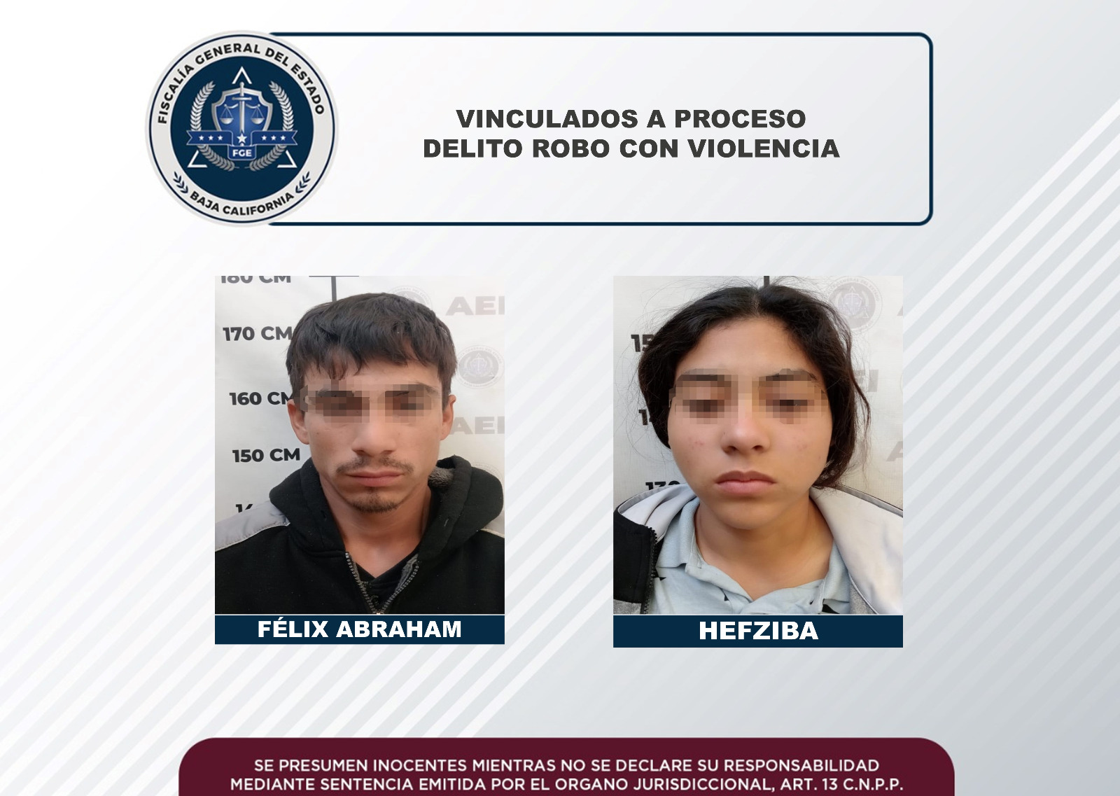 MEXICALI, B.C. La Fiscalía Regional de Mexicali, a través de la Unidad de Investigación con Detenidos Poniente, logró que se iniciara proceso penal en contra de una pareja relacionada en el delito de robo con violencia.