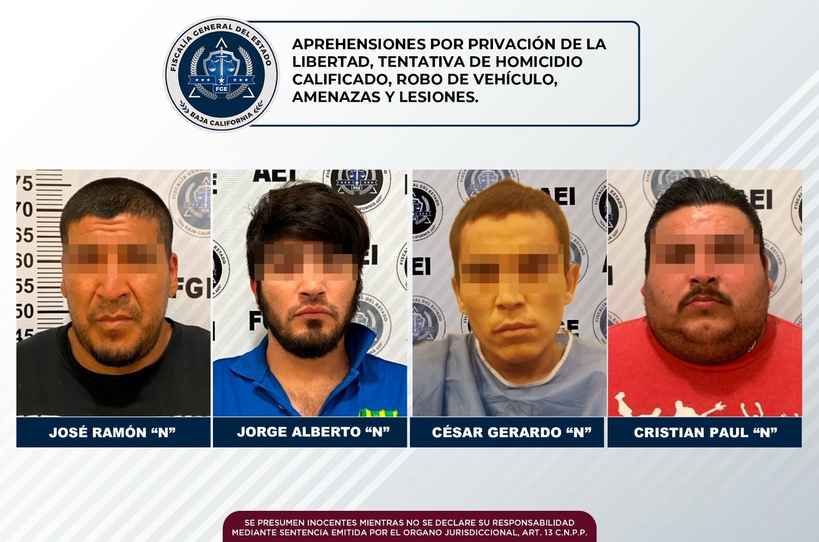 TIJUANA, B.C. La Fiscalía General del Estado, a través de la Unidad de Aprehensiones de la Agencia Estatal de Investigación, logró la captura de cuatro sujetos, quienes eran requeridos por jueces de control, debido a que contaban con mandamientos judiciales en su contra.