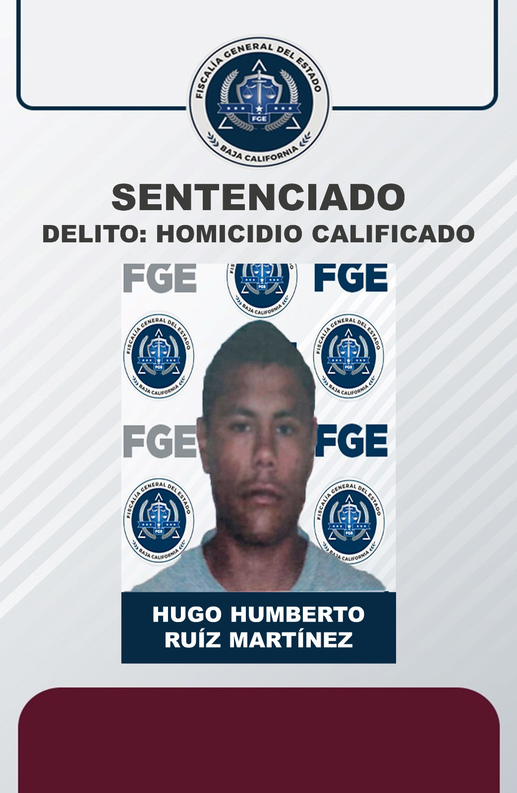ENSENADA, B.C. Pruebas contundentes aportadas por la Fiscalía General del Estado (FGE), resultaron en una sentencia de 23 años de prisión contra Hugo Humberto Ruíz Martínez, culpable del delito de homicidio calificado.