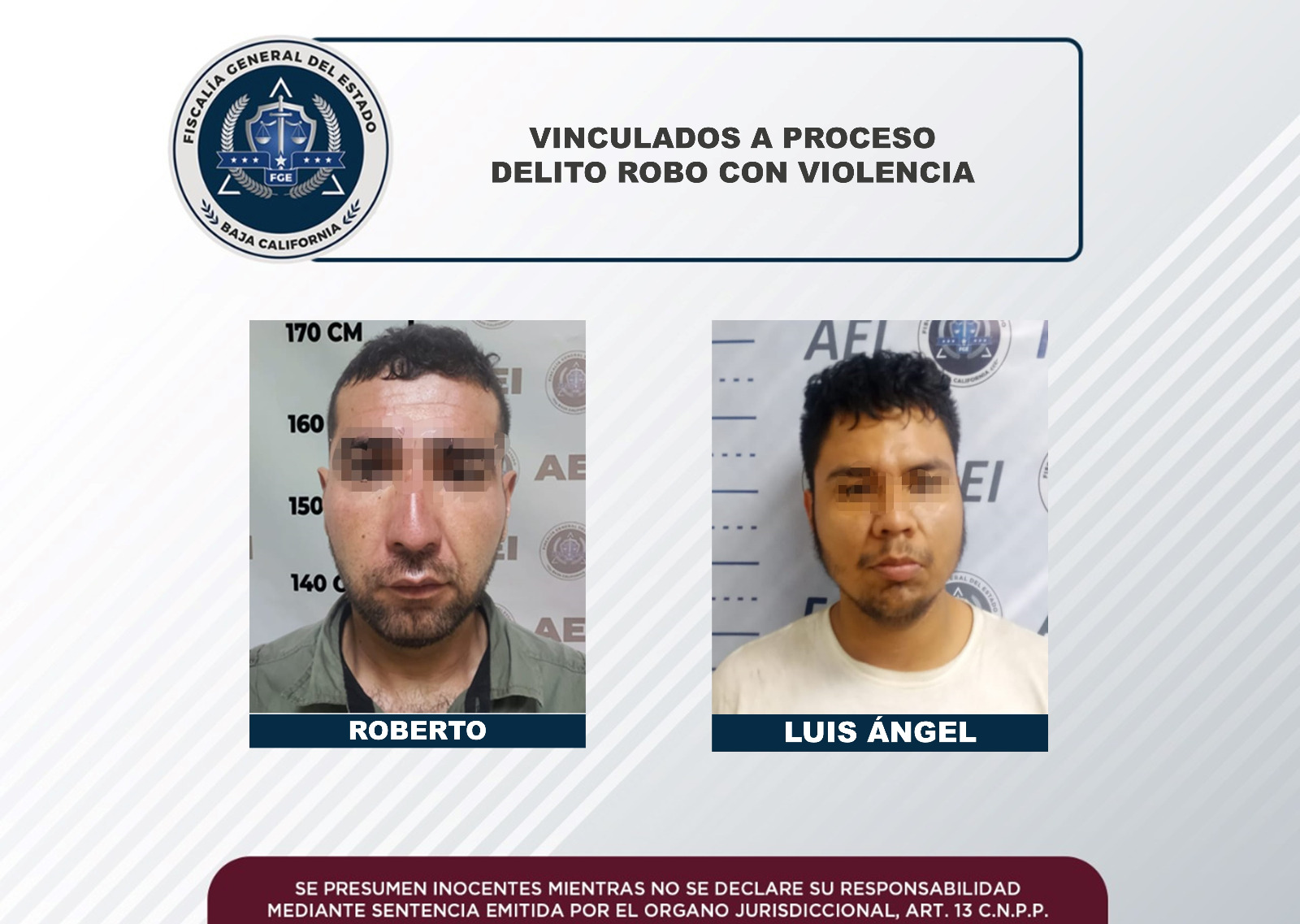 MEXICALI, B.C. Dos hombres acusados de delitos de robo de violencia, fueron vinculados a proceso con base a los elementos de prueba presentados por la Fiscalía Regional de Mexicali, a través de la Unidad de Investigación de Robos Oriente.