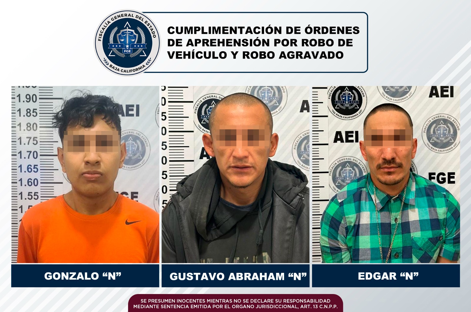 TIJUANA, B.C. Elementos de la Fiscalía General del Estado, adscritos al Grupo Especializado en Aprehensiones, cumplimentaron mandamientos judiciales por los delitos de robo de vehículo y robo agravado, uno de ellos se logró como resultado de los mecanismos de colaboración que existen entre entidades federativas en materia de procuración de justicia.