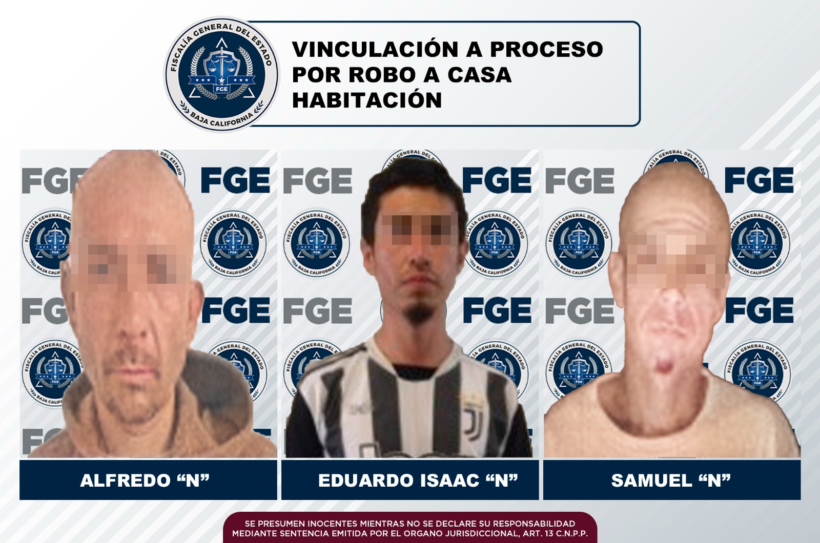 TECATE, B.C. Como resultado de acciones de investigación realizadas por la Fiscalía Regional de Tecate, fue posible que tres sujetos iniciaran proceso penal por el delito señalado por ley como robo calificado a casa habitación.