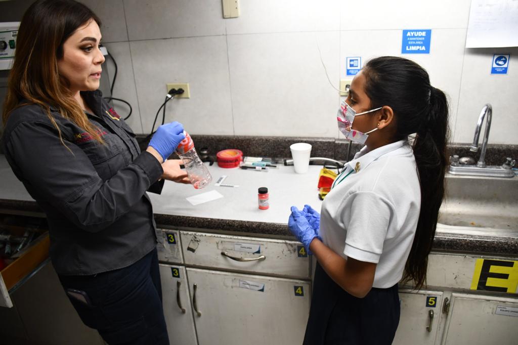 Miriam Venecia, acudió a la Dirección de Ciencias Forenses, ahí el personal le explicó que sus laboratorios están considerados entre los mejores del país por contar con equipo de la mejor tecnología; además en el campo de práctica la niña observó las situaciones simuladas en donde los agentes practican.