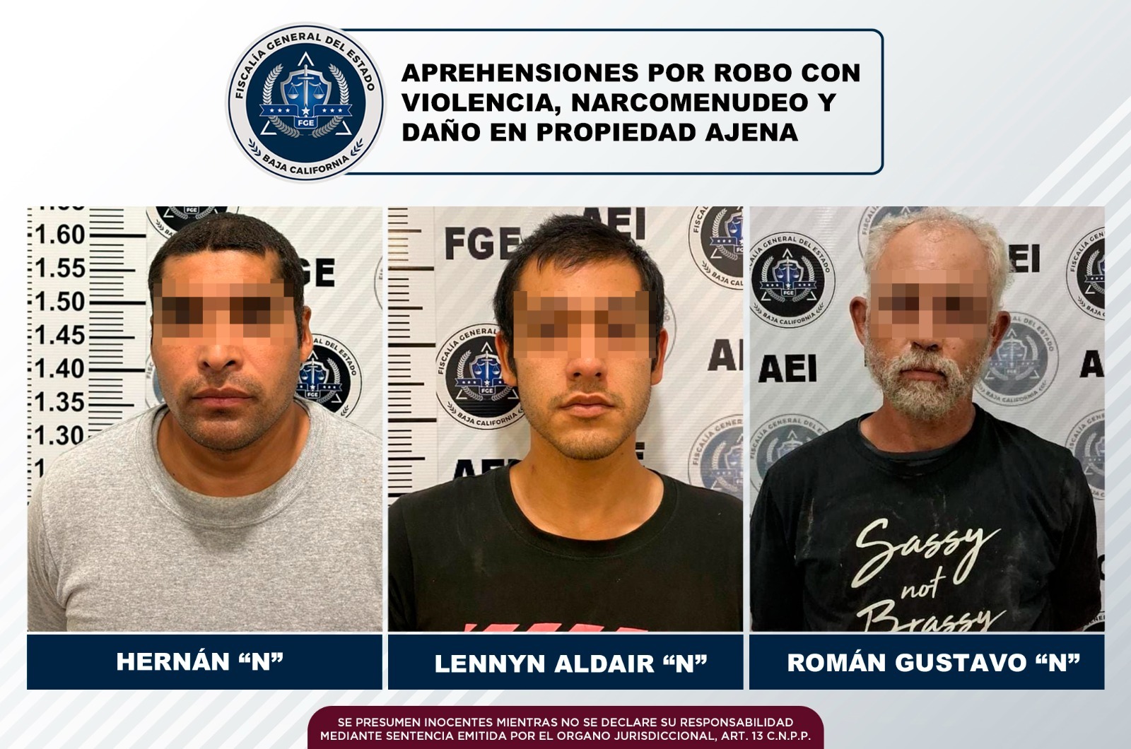 En los tres casos, y de acuerdo al protocolo, se les hizo del conocimiento el motivo de su detención y se les leyeron sus derechos constitucionales, para de inmediato quedar a disposición de los jueces de control, según corresponda el caso.