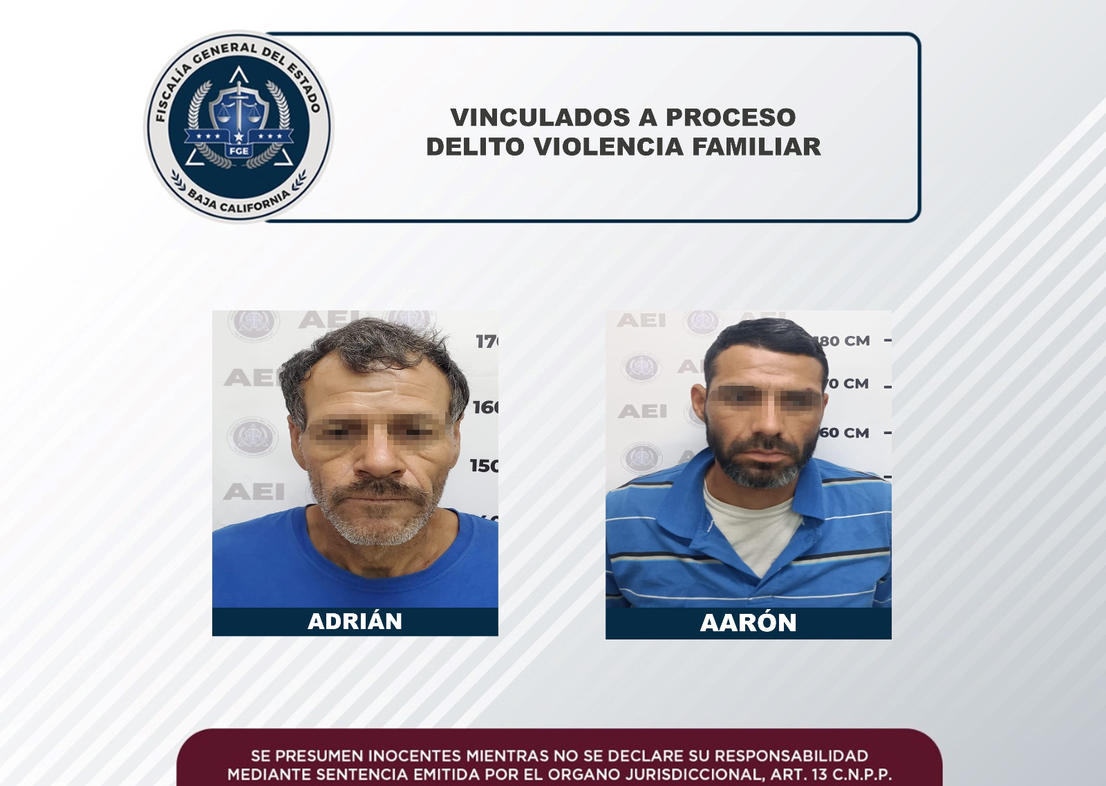 MEXICALI, B.C. La Fiscalía Regional de Mexicali, a través de la Unidad de Investigación Foránea de Guadalupe Victoria, logró que iniciaran proceso penal dos hombres acusados por agredir a sus familiares, en hechos ocurridos en el Valle de Mexicali.