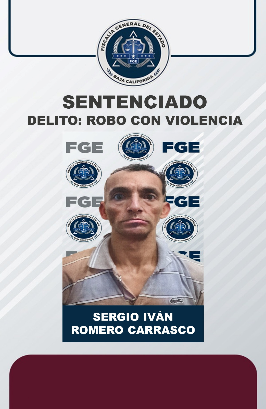ENSENADA, B.C. La Unidad de Investigación de Robos, de la Fiscalía Regional de Ensenada, logró sentencia condenatoria contra un sujeto que cometió robo con violencia en un establecimiento comercial.