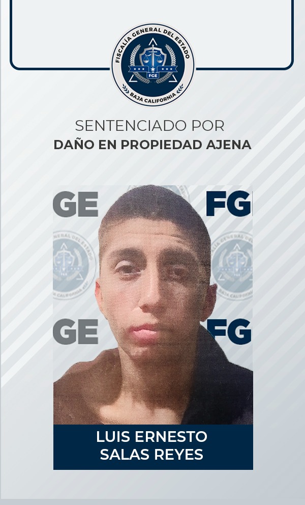 TIJUANA, B.C. 2 DE MAYO DE 2023.- Una investigación realizada por la Fiscalía Regional de Tijuana, tuvo como resultado la obtención de una sentencia contra Luis Ernesto Salas Reyes, culpable del delito señalado por la ley como daño en propiedad ajena agravado por incendio.