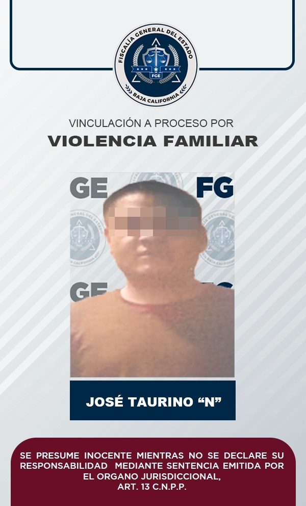 TIJUANA, B.C. 2 DE MAYO DE 2023.- La Fiscalía General del Estado, informa que fue vinculado a proceso penal, José Taurino “N”, por su presunta responsabilidad e el delito de violencia familiar.