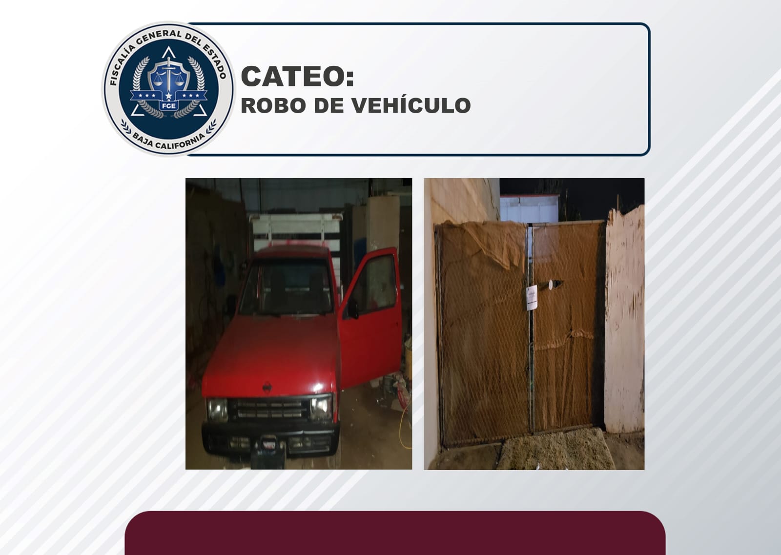 SAN QUINTÍN, B.C. Tras cumplimentar una orden de cateo en un predio ubicado en delegación de Camalú, la Fiscalía Regional de San Quintín, recuperó un pick up que contaba con reporte de robo reciente.
