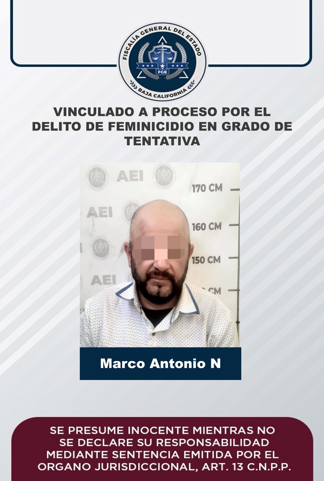 MEXICALI, B.C. La Fiscalía Regional de Mexicali, a través de la Unidad de Investigación de Delitos con Detenidos Poniente, logró la vinculación a proceso de Marco Antonio “N”, por presuntamente cometer el delito de feminicidio en grado de tentativa.