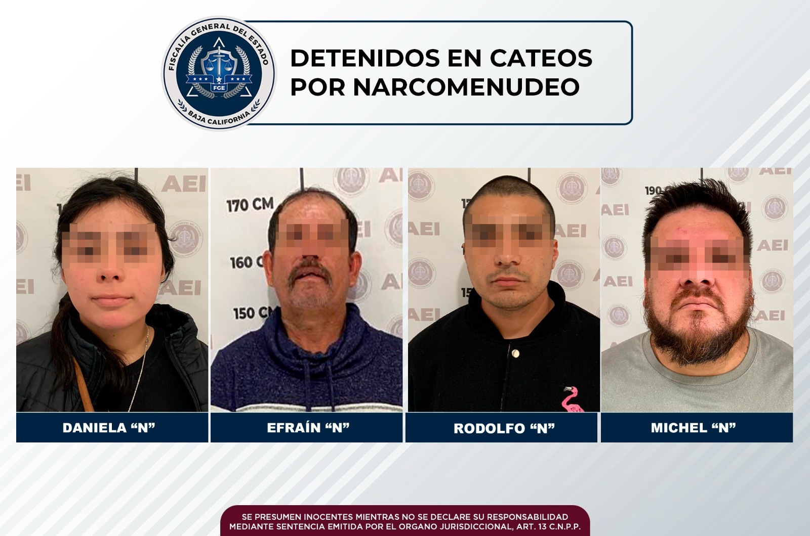 De esta forma se logró la detención de cuatro personas, y el decomiso de varias dosis de droga en tres diversos domicilios en el municipio de Playas de Rosarito.