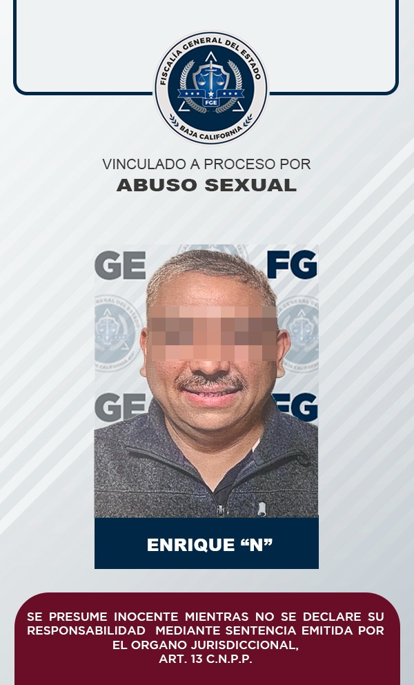 TIJUANA, B.C. Derivado de una investigación que desarrolla la Fiscalía General del Estado, se obtuvo por parte de la autoridad juzgadora, la vinculación a proceso de un hombre acusado del delito que la ley señala como abuso sexual a menor de 14 años.
