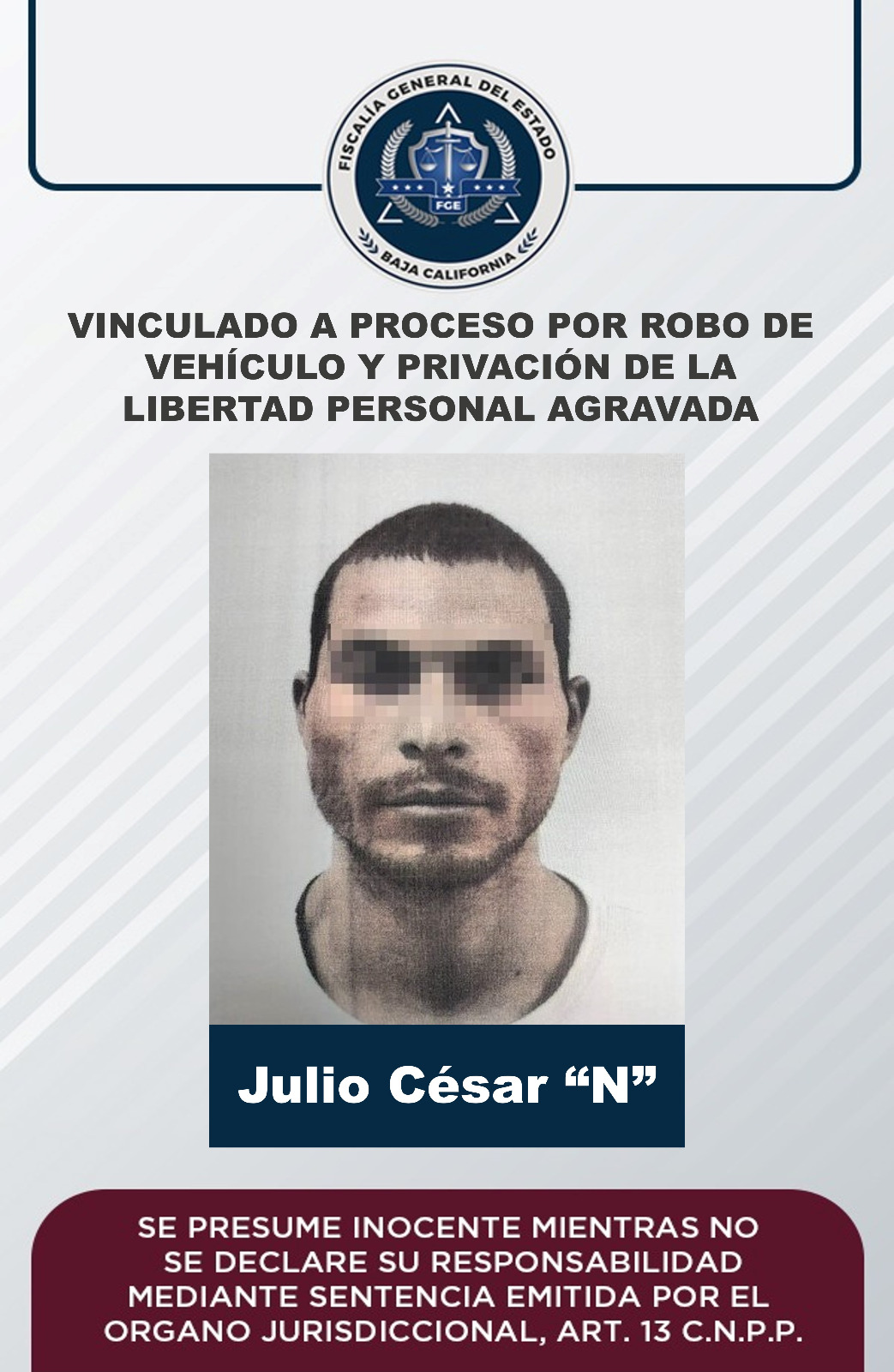 TIJUANA, B.C. A través del Ministerio Público, la Fiscalía Regional de Tijuana expuso ante el Juez de Control datos de prueba que acreditan la posible participación de Julio César “N” en los delitos de robo de vehículo con violencia y privación de la libertad personal agravada.