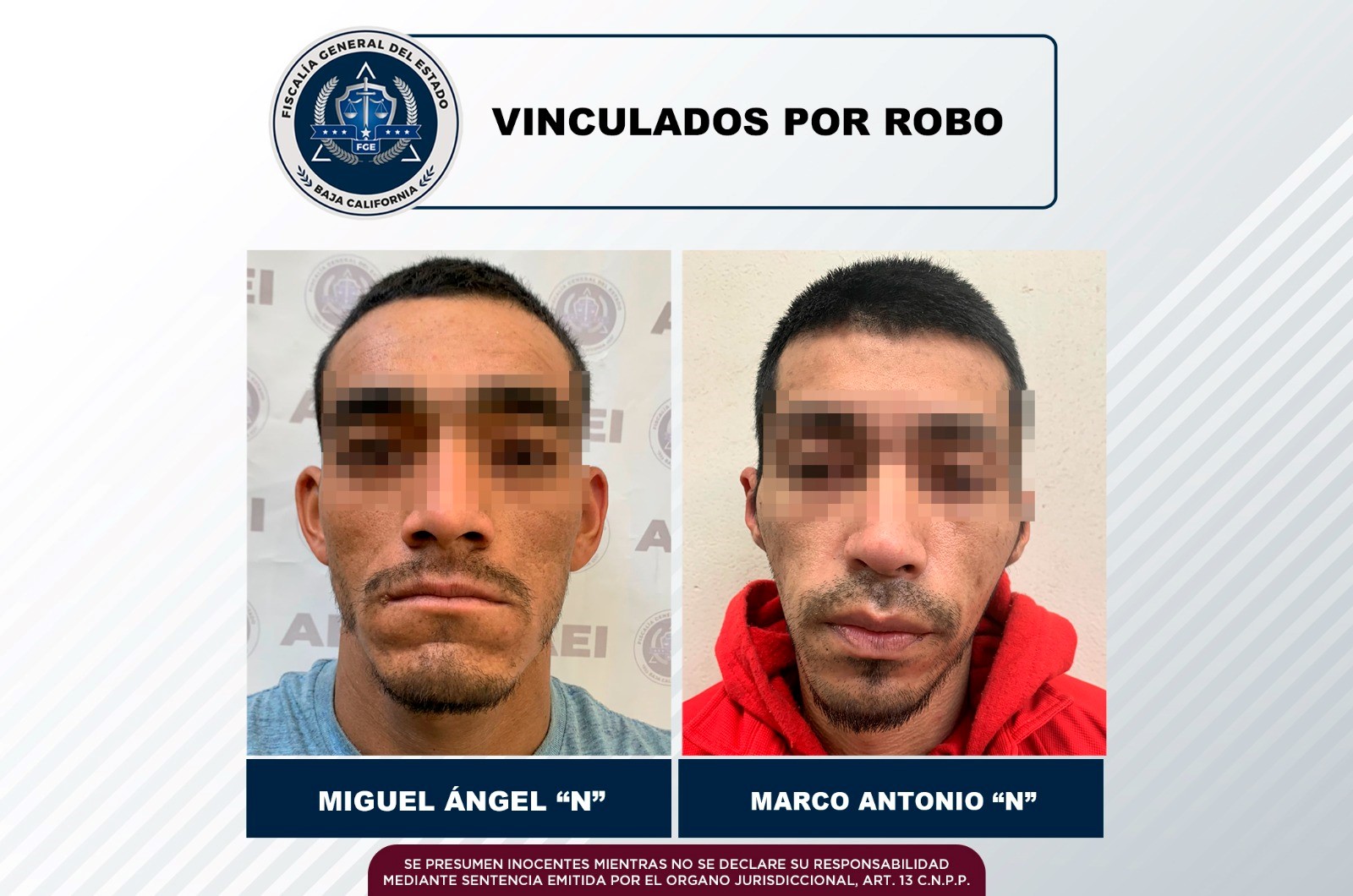 MEXICALI, B.C. La Fiscalía Regional de Mexicali, a través de la Unidad de Investigación con Detenidos Poniente y la Unidad de Robos Oriente, logró con base a las pruebas y argumentos presentados, la vinculación a proceso de dos hombres presuntamente relacionados en el delito de robo con violencia.