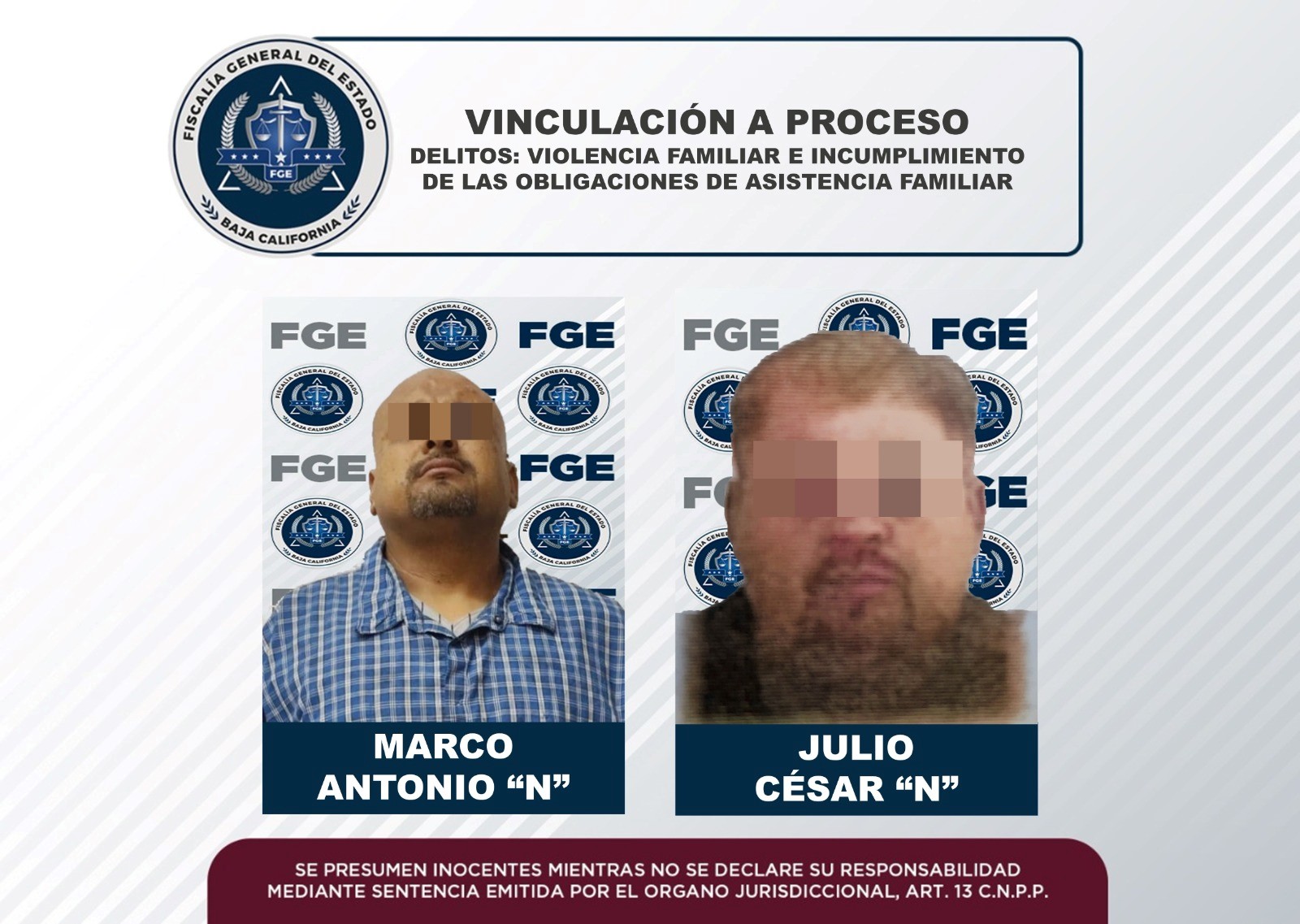 ENSENADA, B.C. La Fiscalía Regional de Ensenada, a través de datos de prueba expuestos por el Ministerio Público, en diferentes casos, logró auto de vinculación a proceso contra dos hombres por el delito de violencia familiar e incumplimiento de las obligaciones de asistencia familiar.