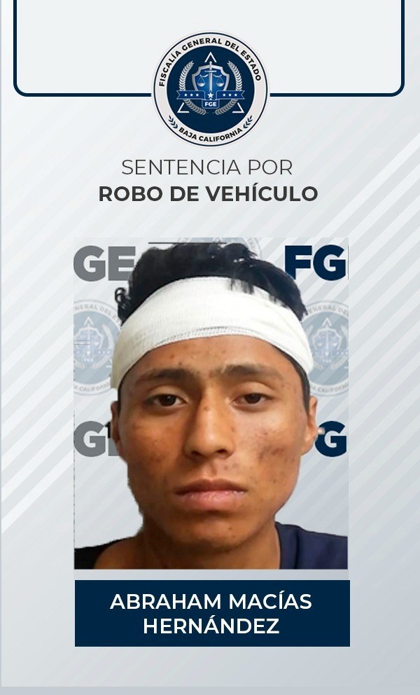 TIJUANA, B.C. La Fiscalía General del Estado obtuvo sentencia condenatoria para un sujeto, por su responsabilidad en los delitos de robo equiparado de vehículo daño en propiedad ajena y manejar bajo el influjo de psicotrópicos.