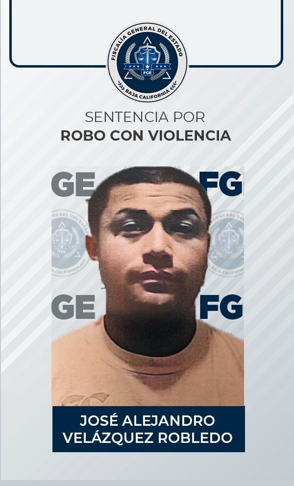 TIJUANA, B.C. El Ministerio Público de la Fiscalía Regional de Tijuana reunió datos de prueba que resultaron en la obtención de una sentencia para sujeto culpable de delito de robo calificado ejecutado con violencia.