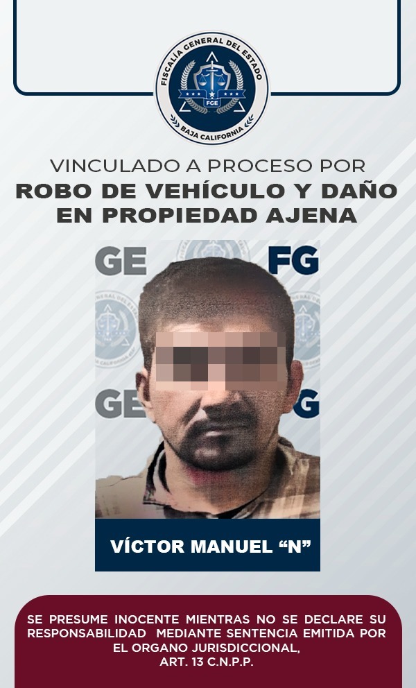 TIJUANA, B.C. La Fiscalía General del Estado, a través del Ministerio Público logró que, quedara sujeto a proceso penal un individuo acusado de los delitos de robo de vehículo de motor y daño en propiedad ajena.
