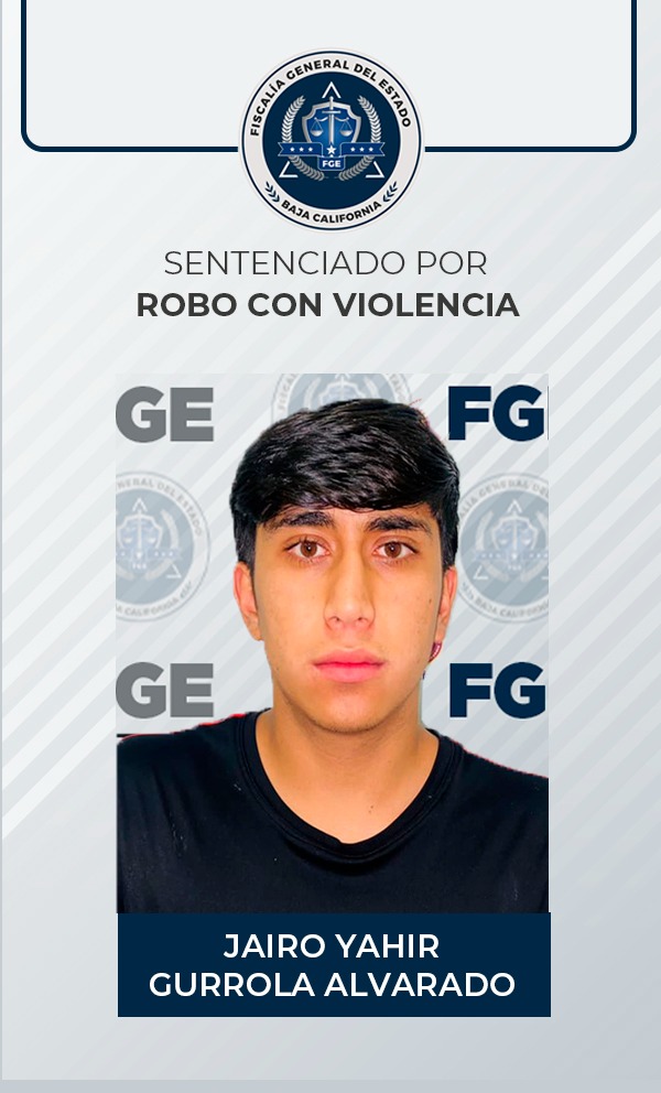 TIJUANA, B.C. Tras ser encontrado penalmente responsable de los delitos de robo con violencia y robo de vehículo, Jairo Yahir Gurrola Alvarado fue sentenciado a tres años y seis meses de prisión; la Fiscalía Regional de Tijuana presentó los datos y elementos de prueba que derivaron en dicha pena privativa de la libertad.
