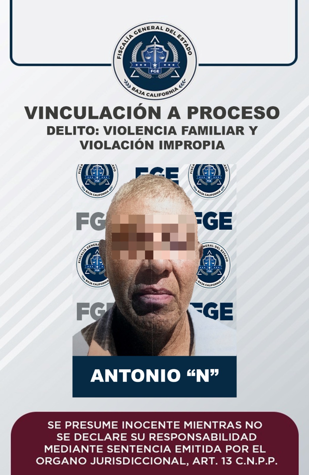 SAN QUINTÍN, B.C. La Fiscalía General del Estado, a través del Ministerio Público, presentó cargos logrando que el Juez de Control inicie proceso penal contra Antonio “N” por los delitos de violencia familiar y violación impropia.