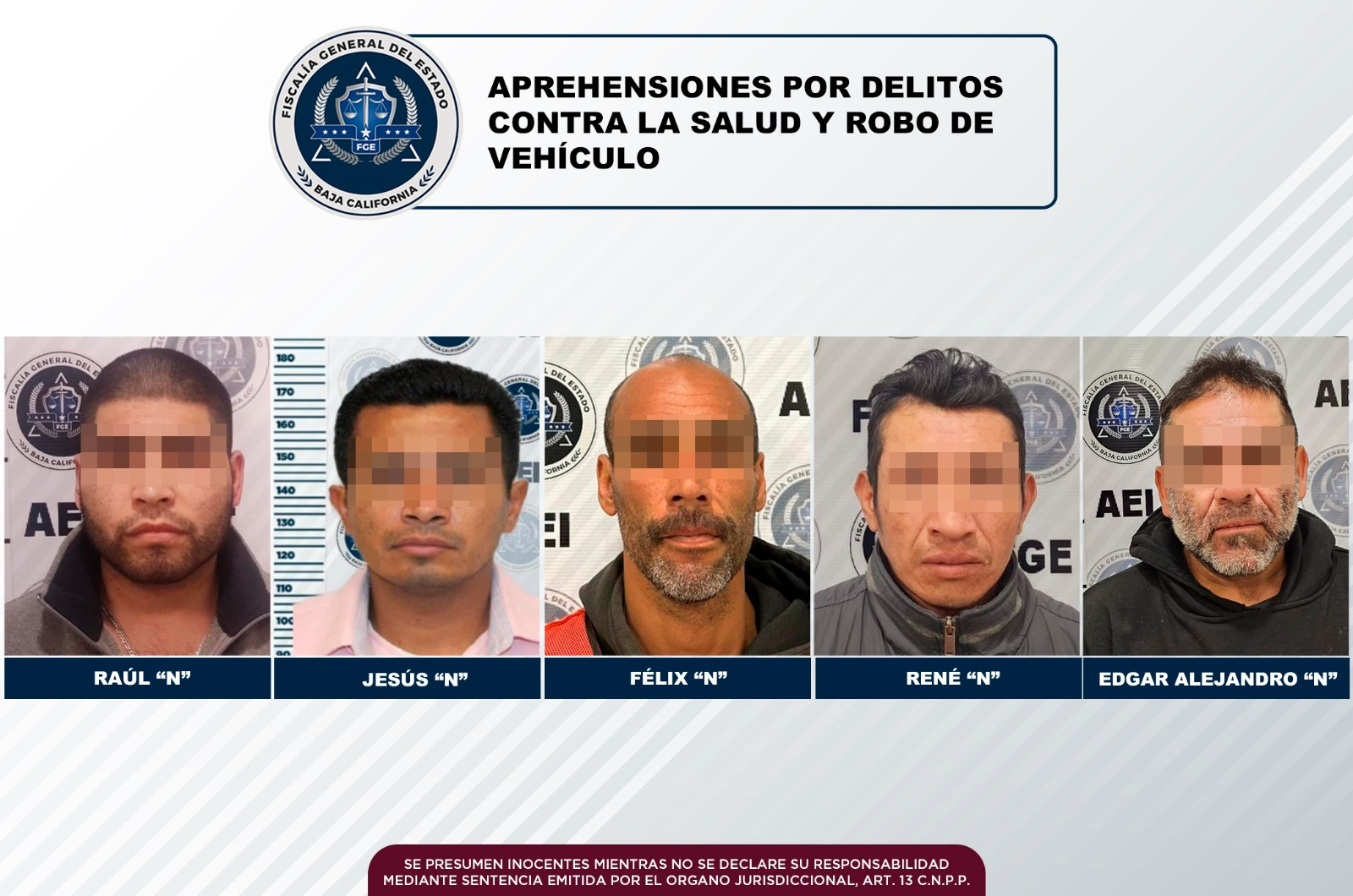 TIJUANA, B.C. Derivado de la labor realizada por elementos adscritos a la Agencia Estatal de Investigación (AEI) de la Fiscalía General del Estado, fue posible la cumplimentación de diversas órdenes de aprehensión por delitos contra la salud y robo de vehículo.
