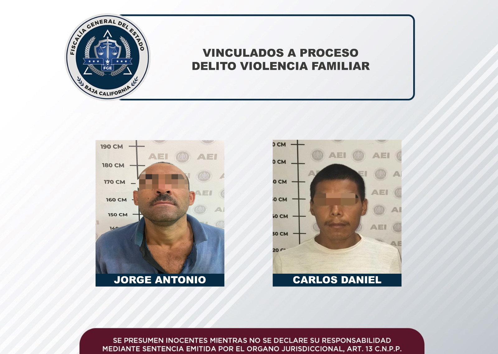 MEXICALI, B.C. La Fiscalía Regional de Mexicali, a través de la Unidad de Investigación con Detenidos Oriente y la Unidad Foránea de Guadalupe Victoria, obtuvo auto de vinculación a proceso de dos imputados por el delito de violencia familiar.